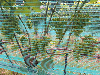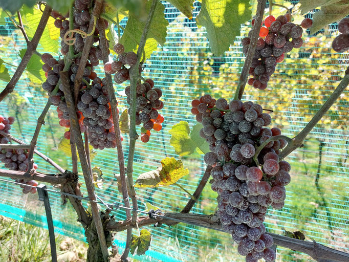Mit einem Netz geschützt freuen sich die Reben auf viele sonnige Tage... und wir freuen uns auf eine tolle Ernte im Herbst :)