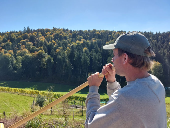 Michael hat auch dieses Jahr wieder den "Gruss an die Reben" auf dem Alphorn gespielt und so die Rebsaison beendet.